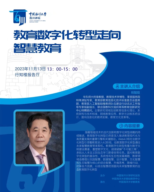 研究生百川讲坛 | 第268讲 祝智庭:教育数字化转型走向智慧教育