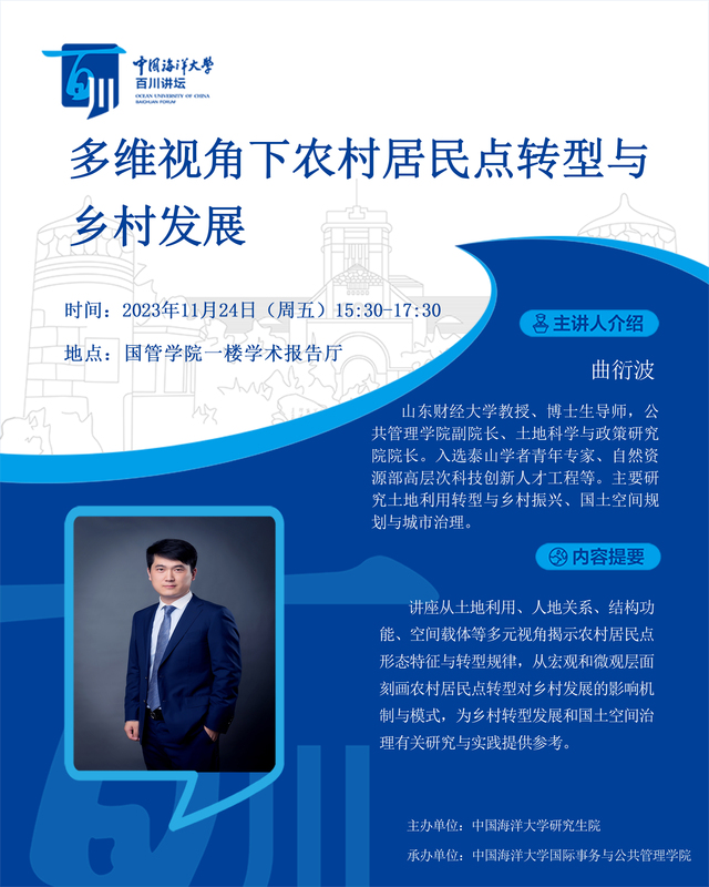 研究生百川讲坛 | 第274讲 曲衍波:多维视角下农村居民点转型与农村发展