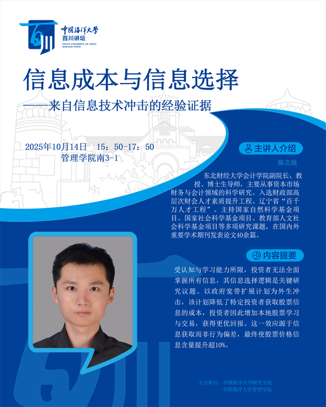 研究生百川讲坛 | 第530讲 陈克兢:信息成本与信息选择——来自信息技术冲击的经验证据