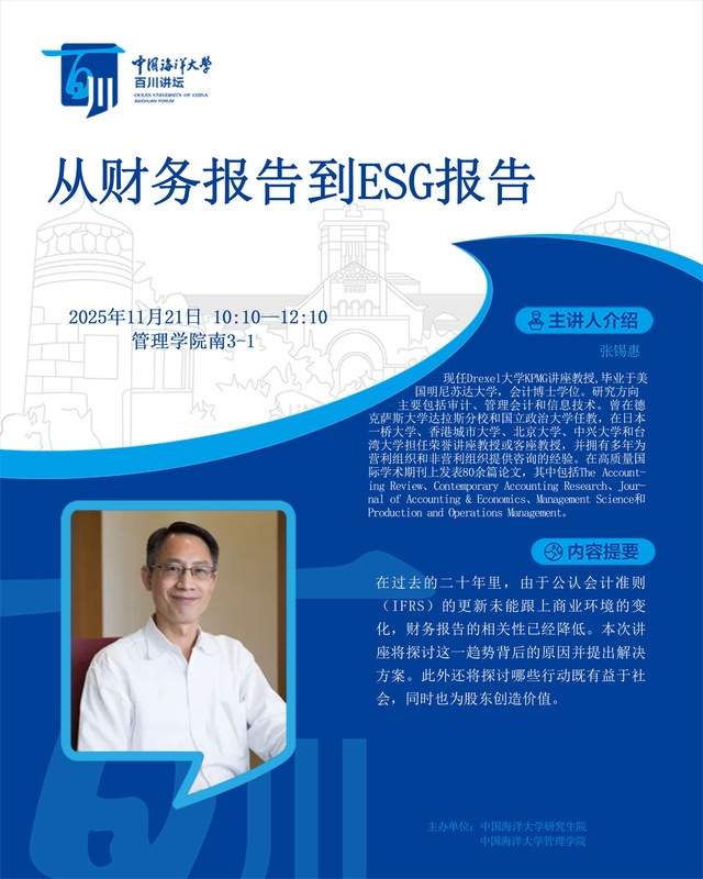 研究生百川讲坛 | 第565讲 张锡惠:从财务报告到ESG报告