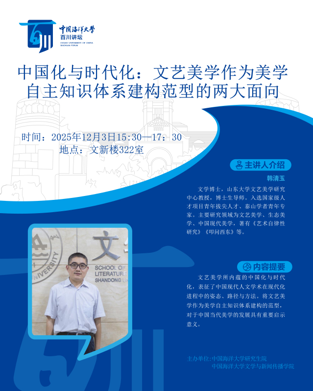 研究生百川讲坛 | 第574讲 韩清玉:中国化与时代化:文艺美学作为美学自主知识体系建构范型的两大面向