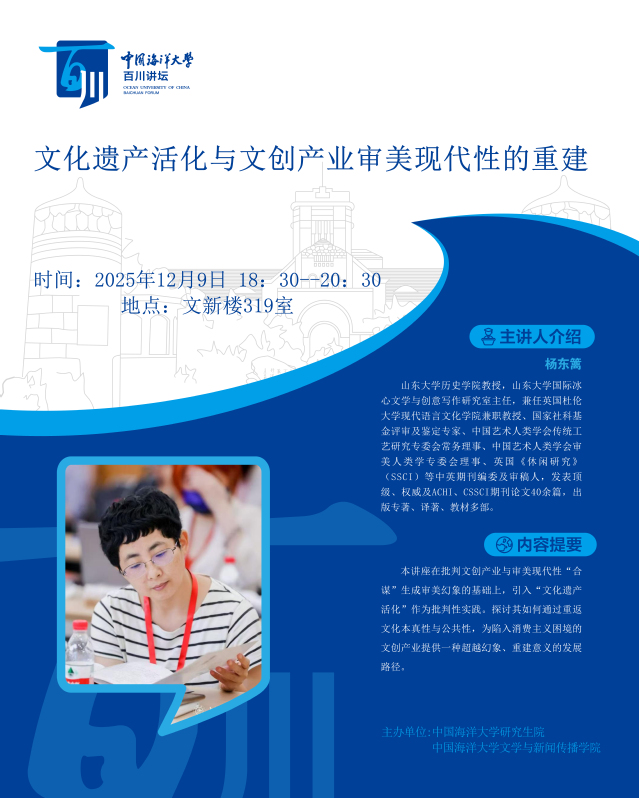 研究生百川讲坛 | 第579讲 杨东篱:文化遗产活化与文创产业审美现代性的重建