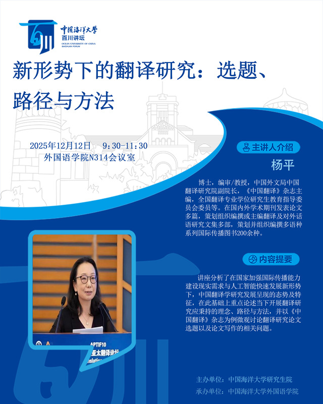 研究生百川讲坛 | 第581讲 杨平:新形势下的翻译研究:选题、路径与方法