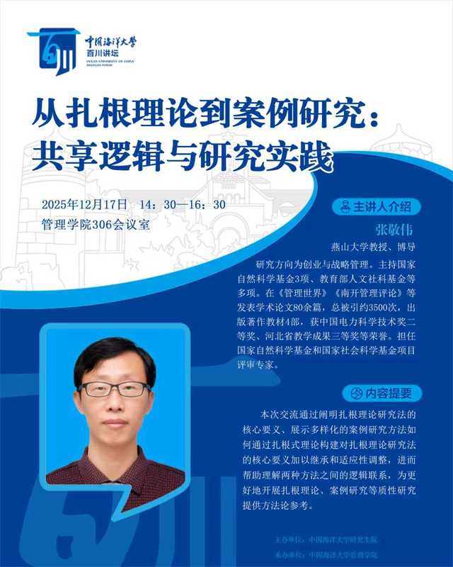研究生百川讲坛 | 第588讲 张敬伟:从扎根理论到案例研究:共享逻辑与研究实践