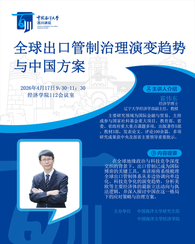 研究生百川讲坛 | 第594讲 霍伟东:全球出口管制治理演变趋势与中国方案