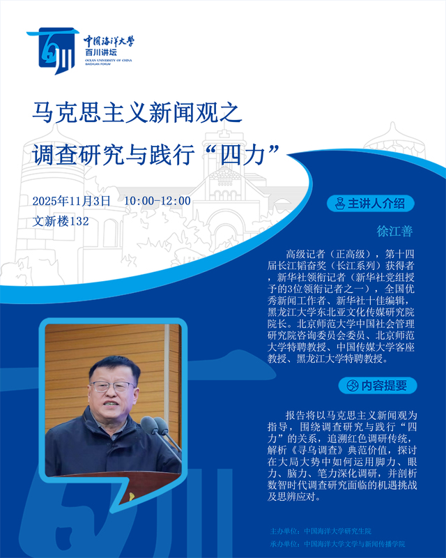研究生百川讲坛 | 第549讲 徐江善:马克思主义新闻观之调查研究与践行“四力”