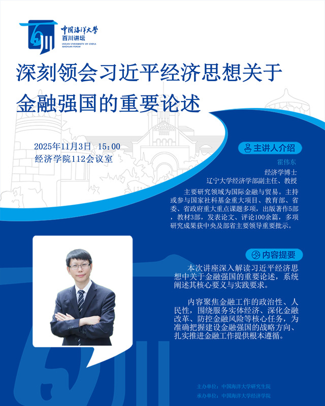 研究生百川讲坛 | 第550讲 霍伟东:深刻领会习近平经济思想关于金融强国的重要论述