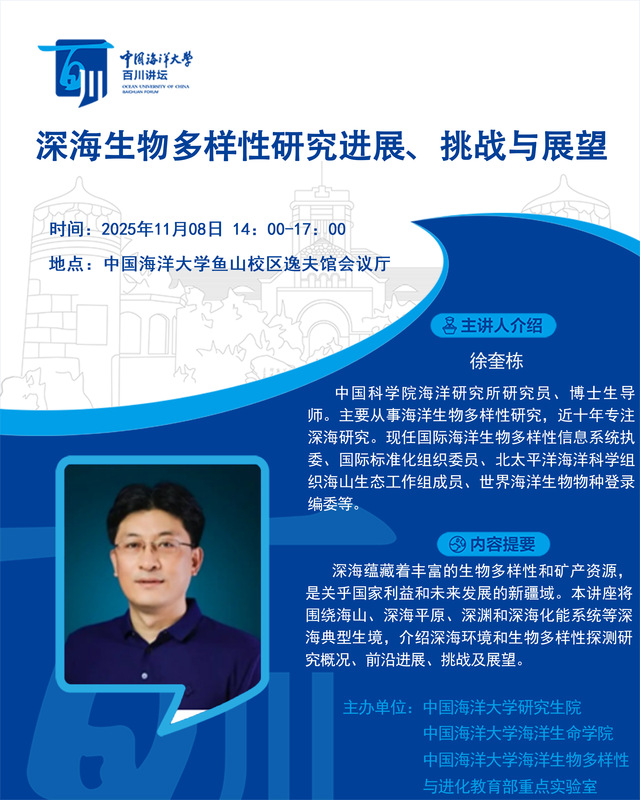研究生百川讲坛 | 第557讲 徐奎栋:深海生物多样性研究进展、挑战与展望