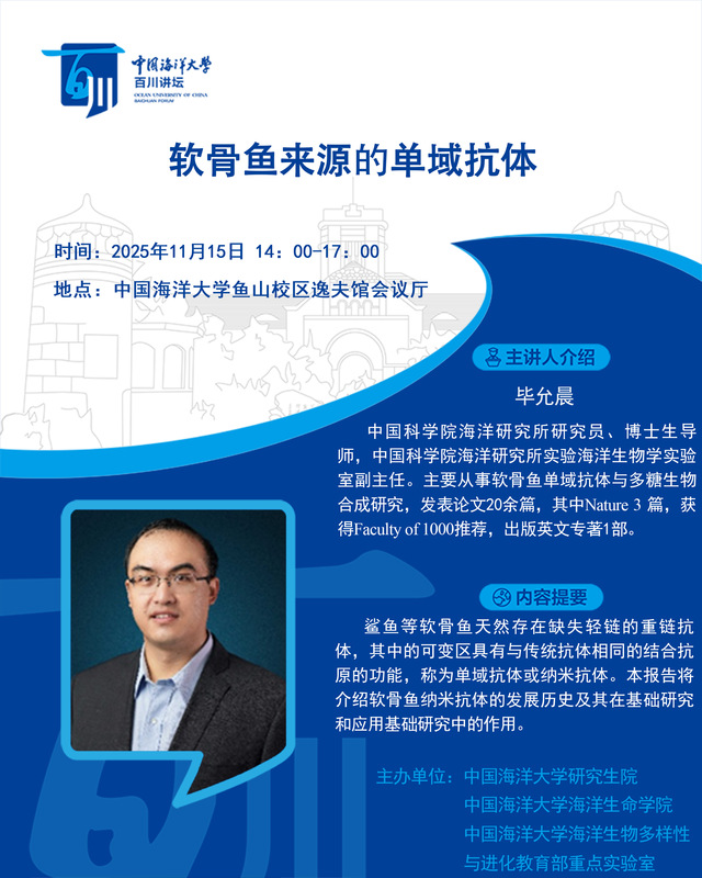 研究生百川讲坛 | 第561讲 毕允晨:软骨鱼来源的单域抗体