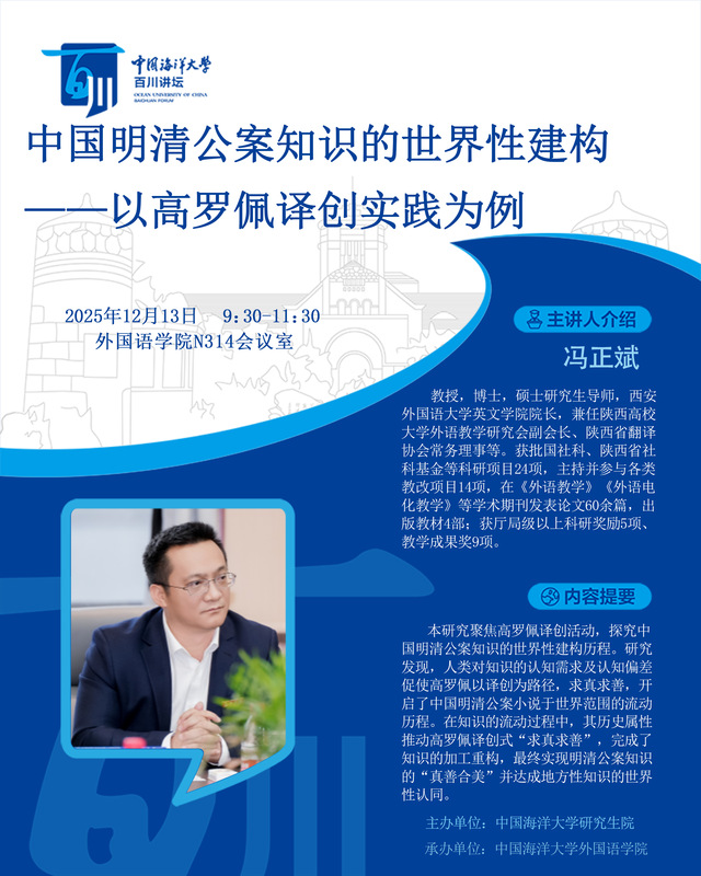 研究生百川讲坛 | 第585讲 冯正斌:中国明清公案知识的世界性建构——以高罗佩译创实践为例